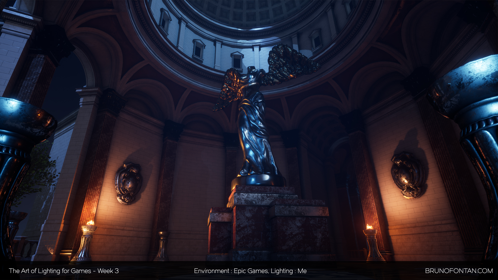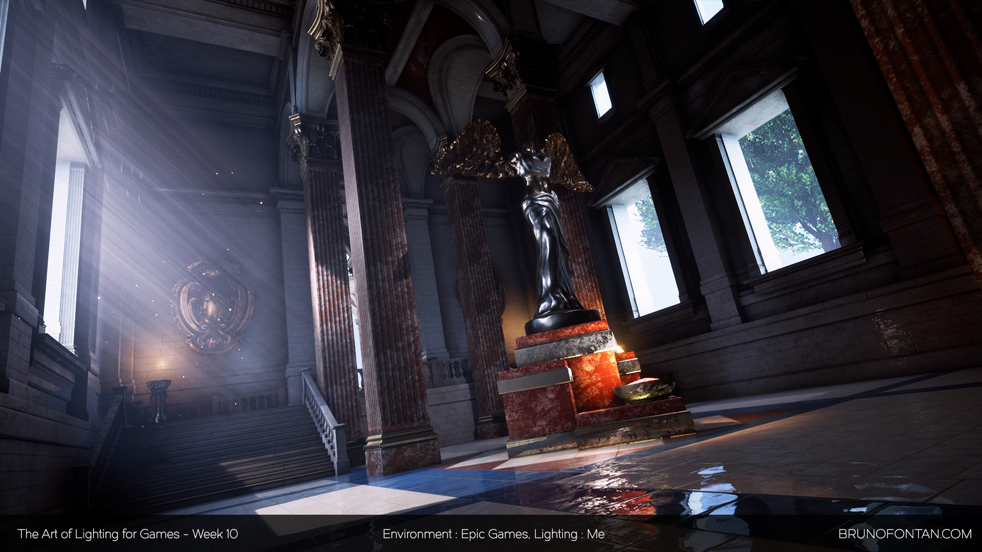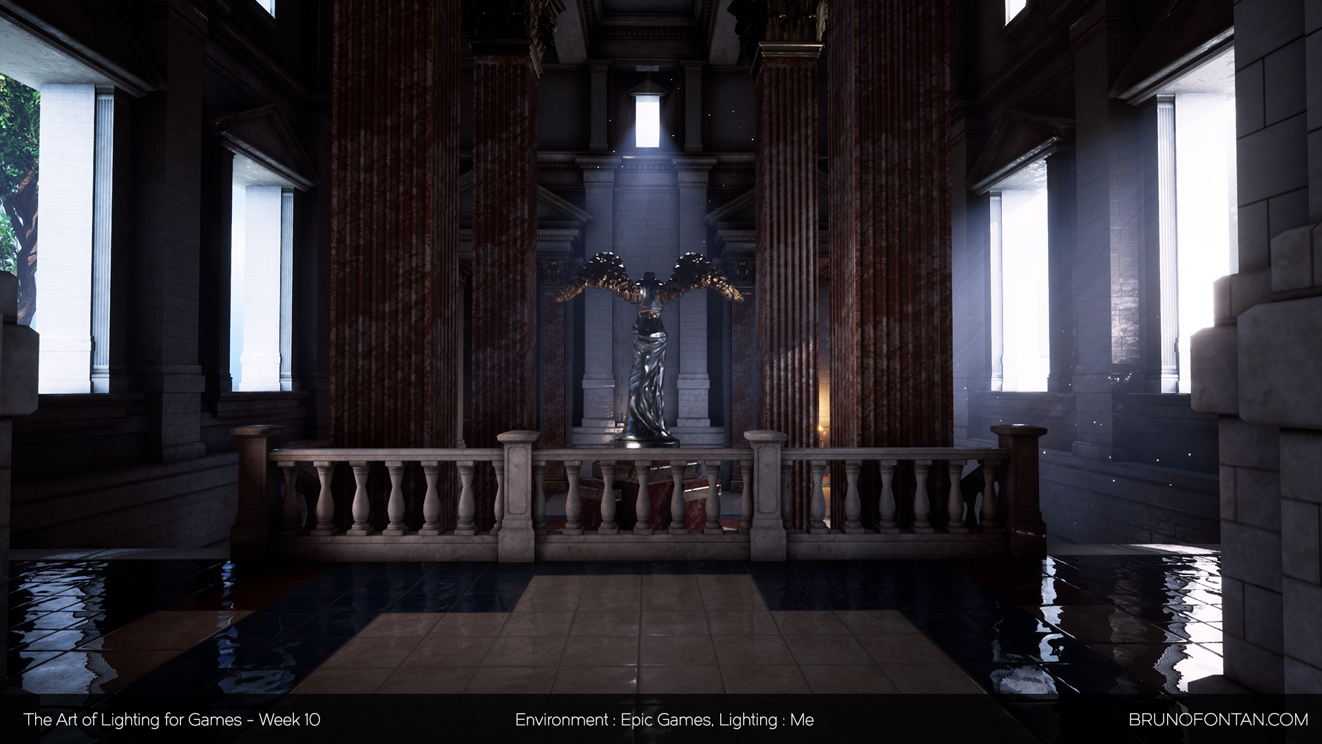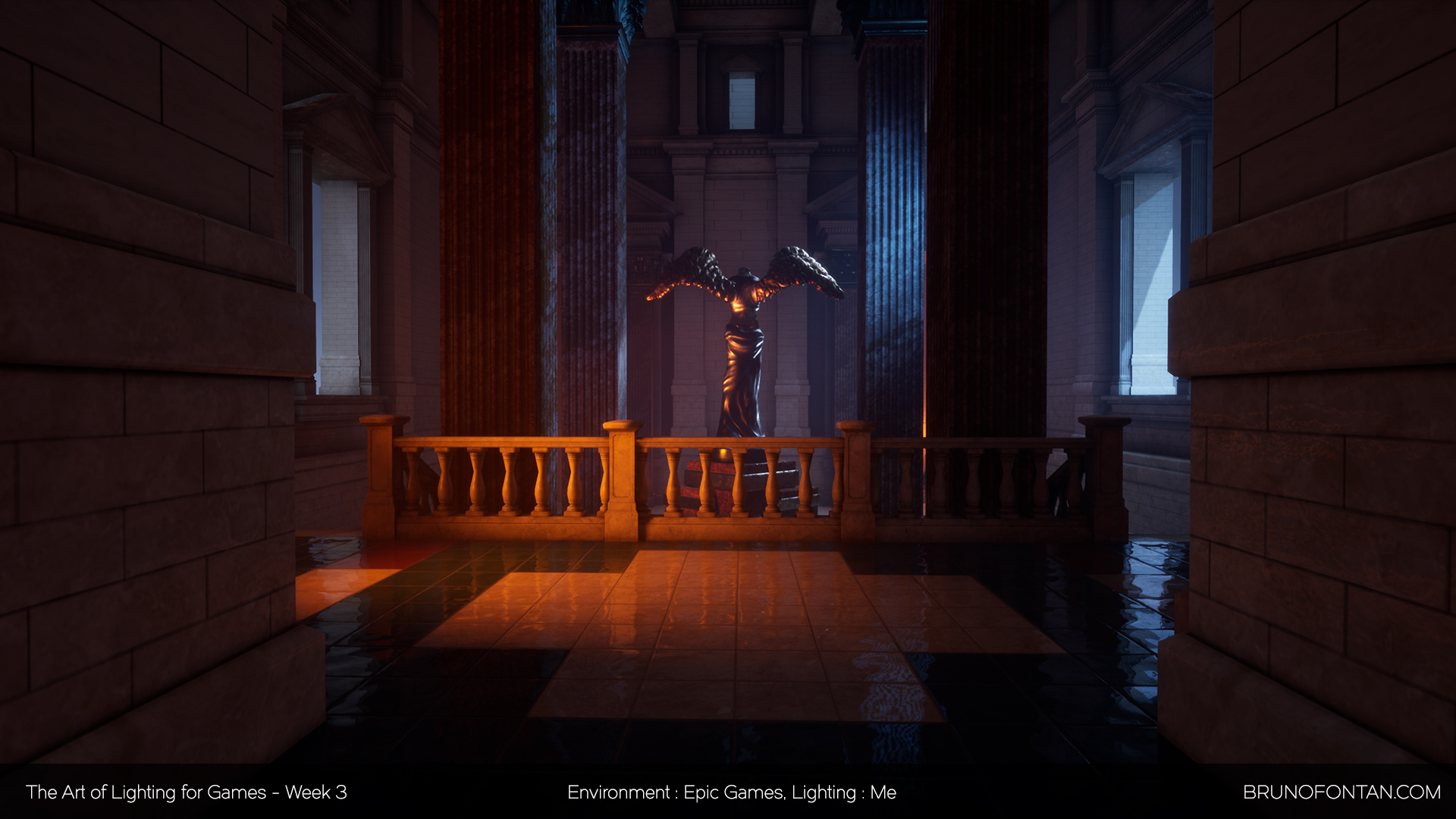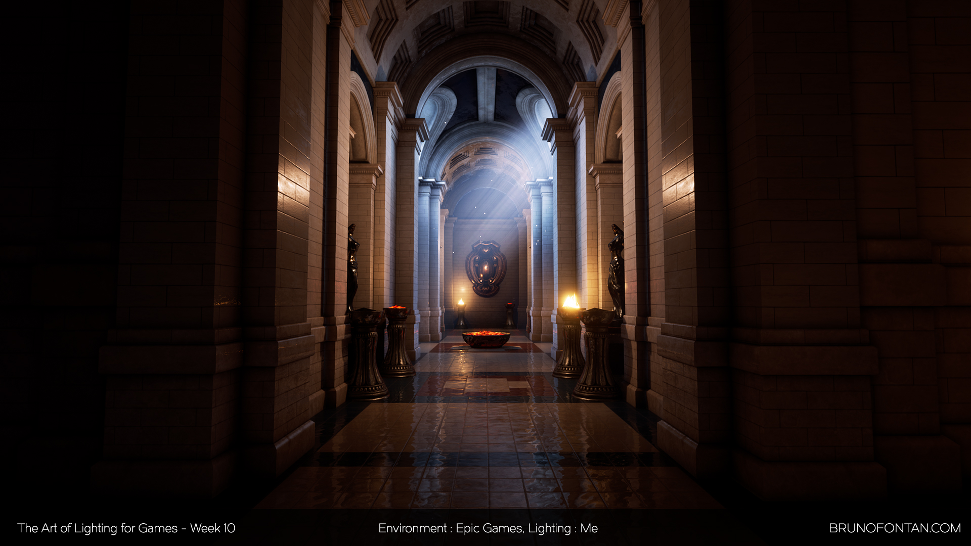 Here are some of my works done as assignments for the class. I was provided with completely unlit scenes (available from Unreal Engine library) and was asked to light them, similarly to what would happen in a regular production for a lighting artist.