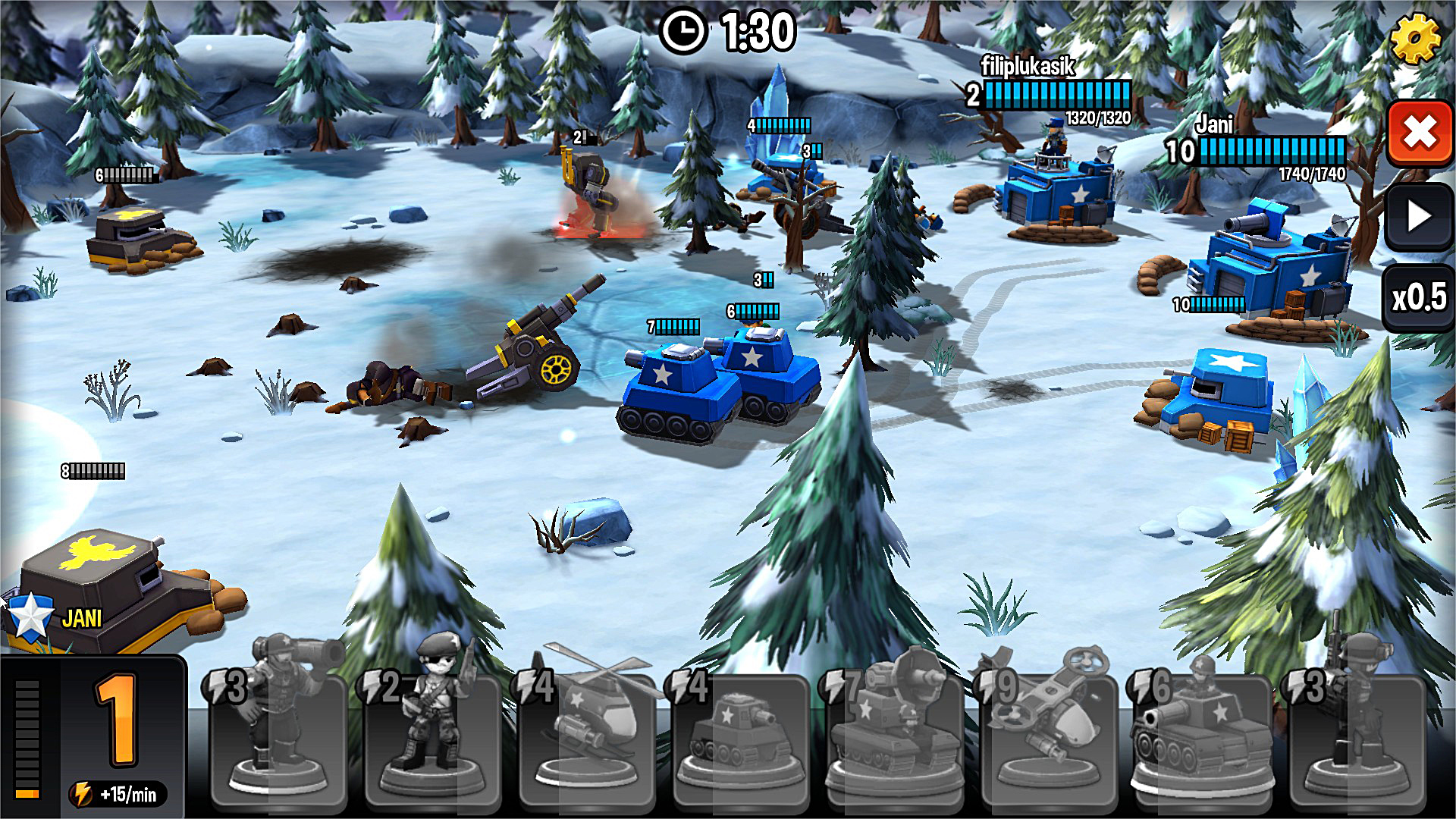 Mini Guns is a real-time tactical strategy game set in a stunning cartoonish world for mobile and web. Players can choose their allegiances between multiple factions and have their heroic tiny troops storm the battlefield in explosive, player versus player warfare.